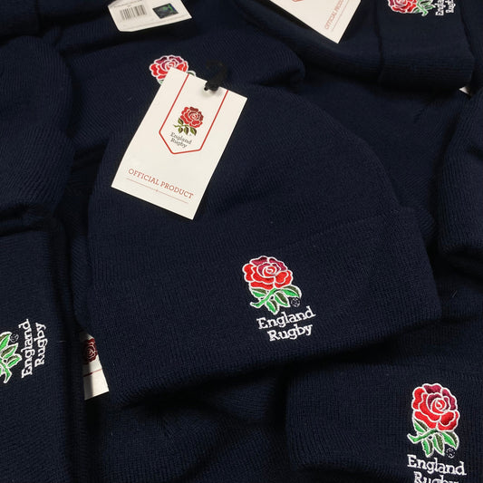 Retro 90s England Rugby Beanie Hat Blue