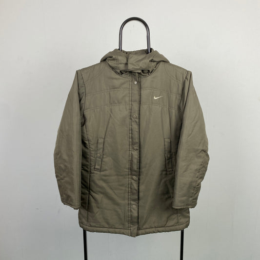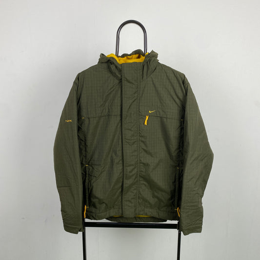 00s Nike Fleece Lined Grid Coat Jacket Green XS