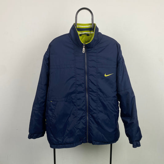 90s Nike Reversible Fleece Coat Jacket Blue Small