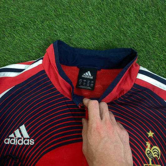 2001/02 Adidas France Football Tracksuit Jacket + Joggers Set Red Large