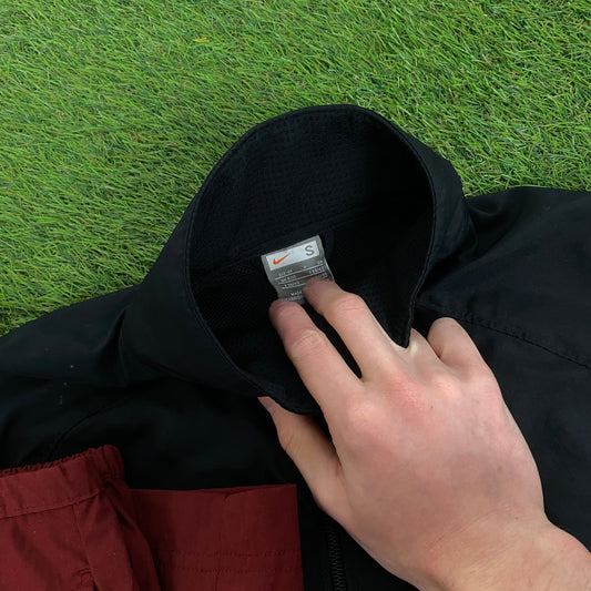 00s Nike Piping Windbreaker Jacket + Joggers Set Black Womens Small