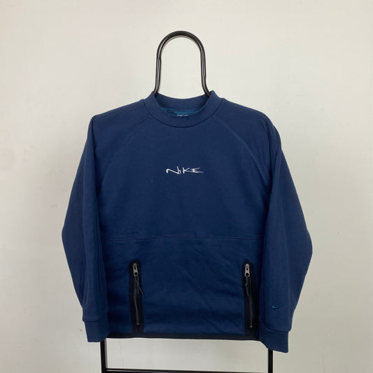 00s Nike Script Sweatshirt Blue XS