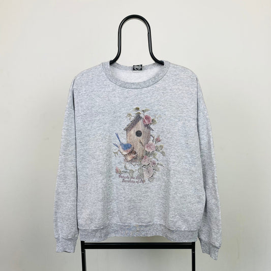 Retro 90s Bird Sweatshirt Grey Large