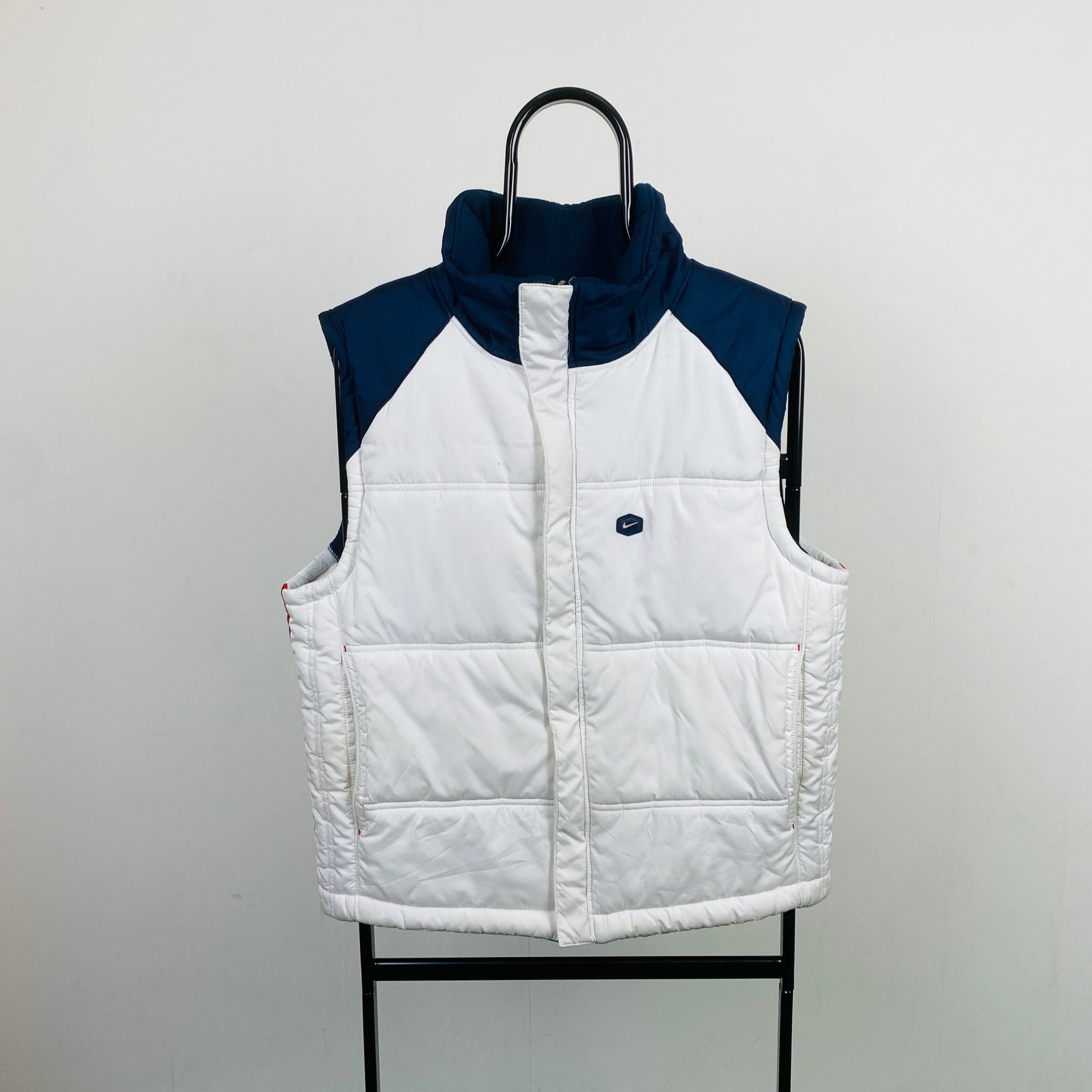 00s Nike Hex Reversible Puffer Gilet Jacket White Blue Medium