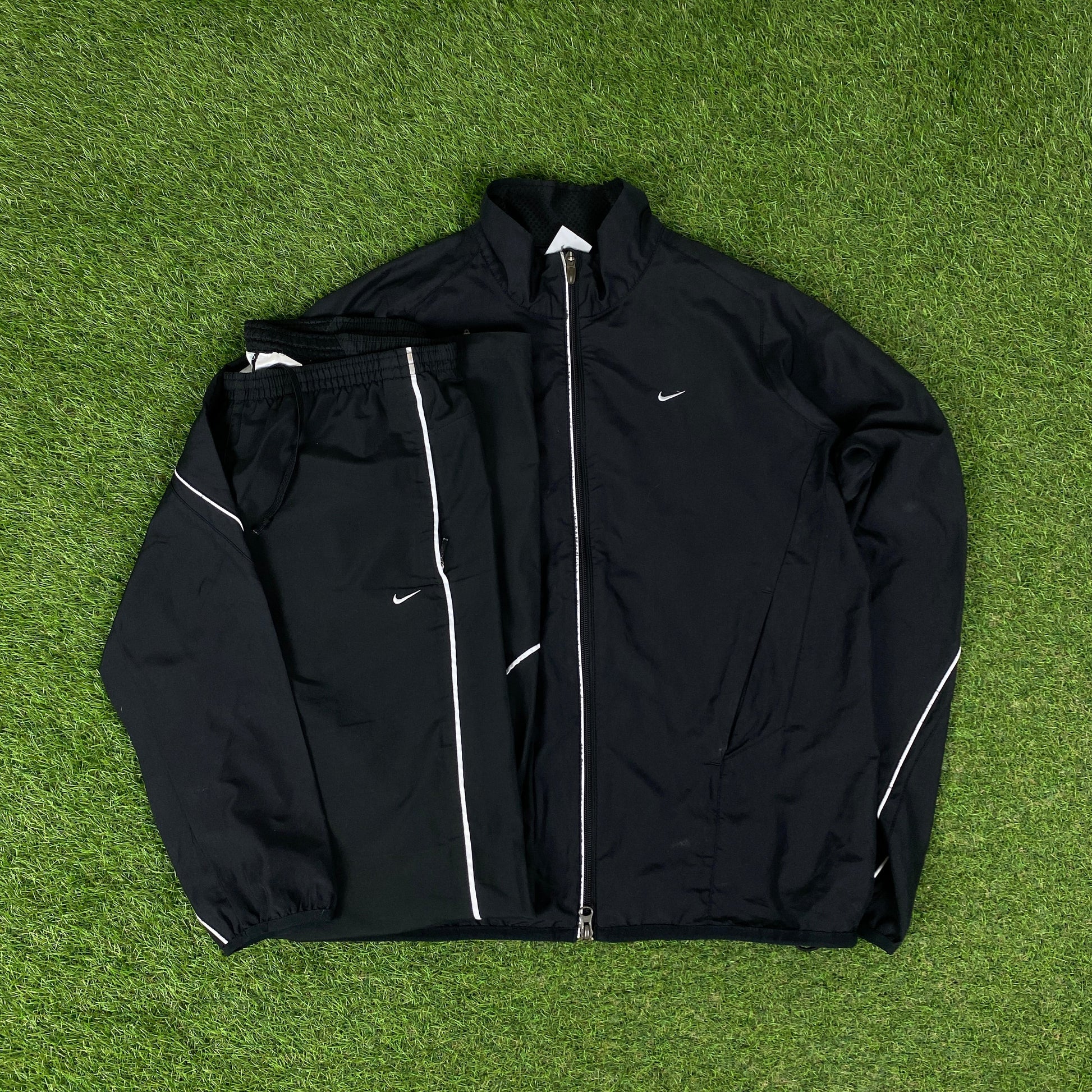 00s Nike Piping Windbreaker Jacket + Joggers Set Black Medium