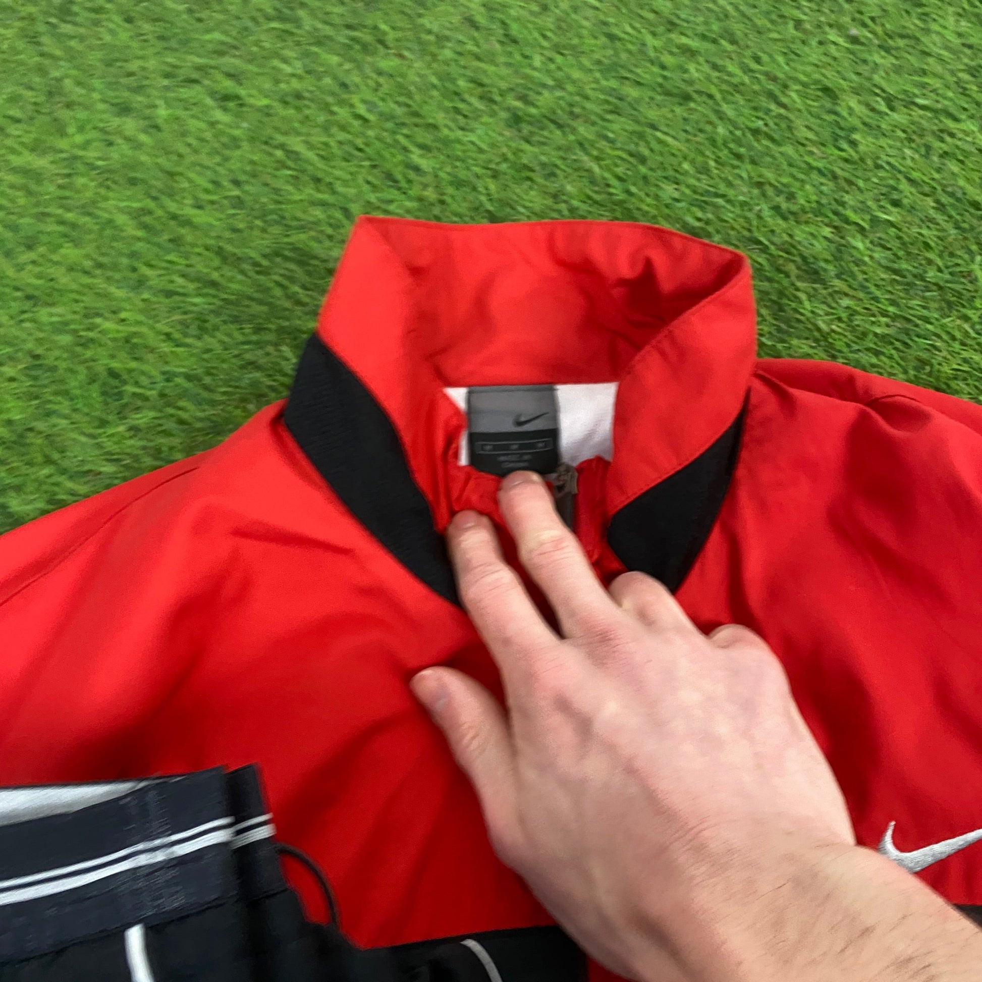 00s Nike Piping Windbreaker Jacket + Joggers Set Red Medium
