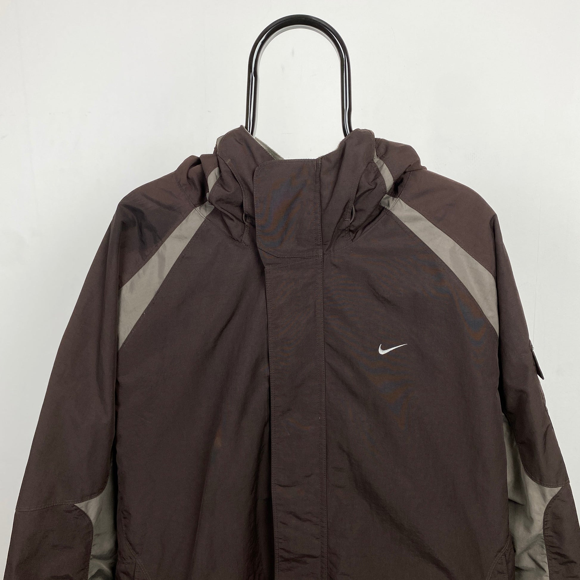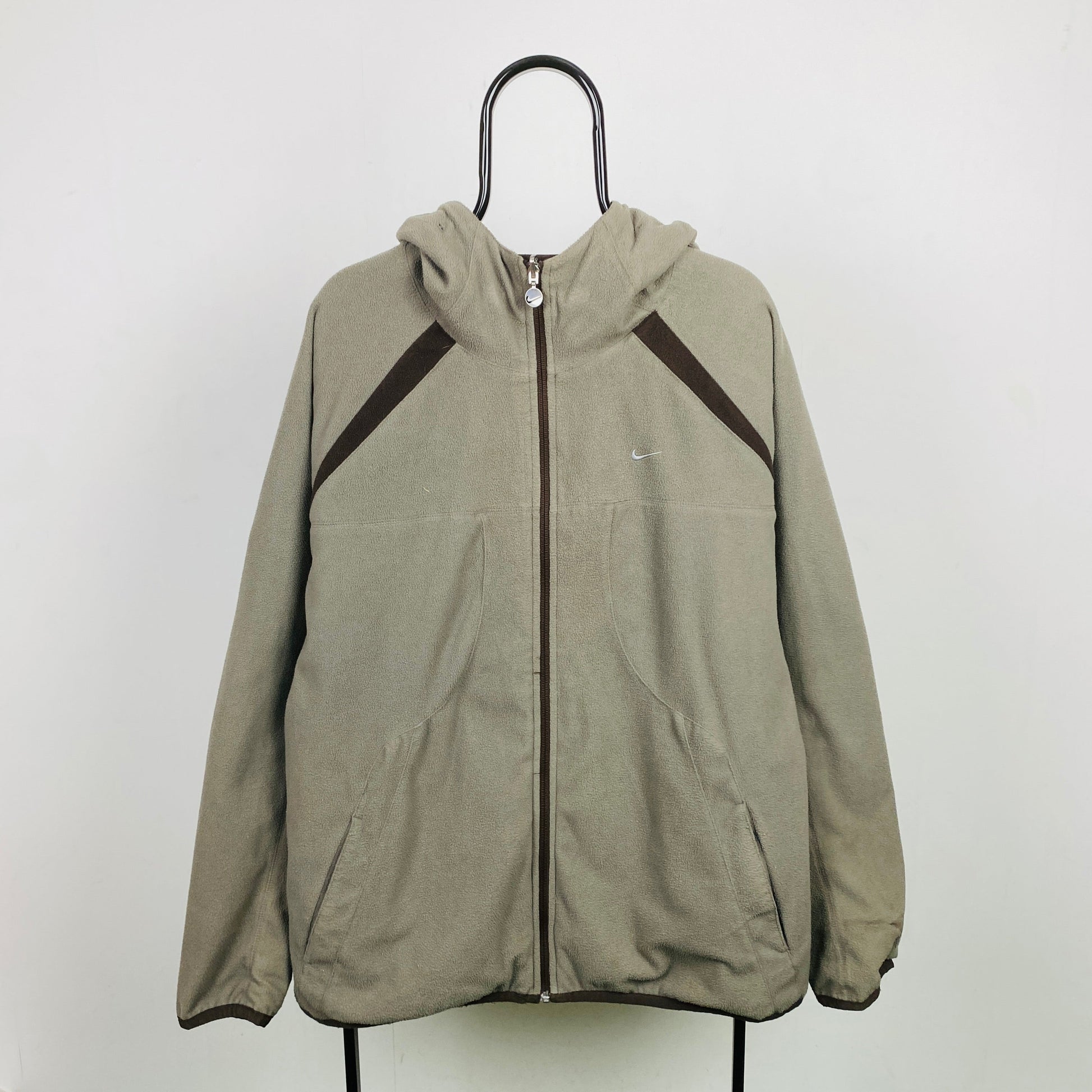 90s Nike Reversible Fleece Coat Jacket Brown XL